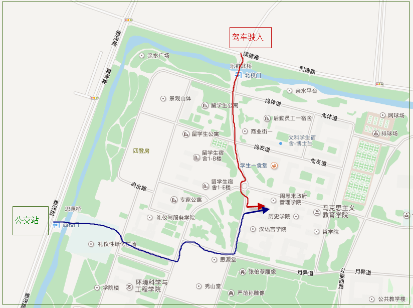 6. 驾车至海河教育园同德路同心路交口 → 津南校区西北门 → 公司大楼