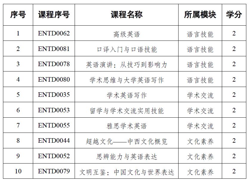 2.接教务部通知,2024级起,公共英语提高段课程新增4门课程,本学期起正常开设的课程只有10门,如下图所示。员工需要从中修读1门课程,拿到必修2学分。系统中培养方案已做了调整。