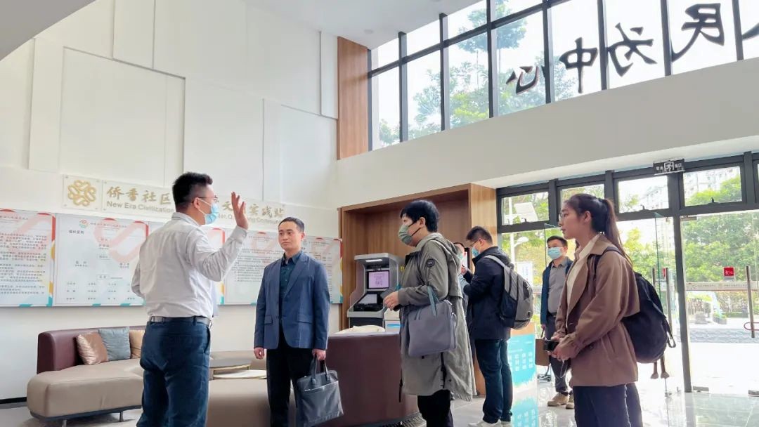 课题组对深圳城市基层治改革展开调研。在深圳市福田区香蜜湖街道、侨香社区,课题组与街道、社区的负责同志就流动人口服务、数字政府、基层管理体制改革、社会组织参与社区治理等问题进行了深入沟通,详细了解了“街社一体化”“采、办、督”“党居社共治”“社区区域安全一体化”等深圳流量城市治理的重要经验。在坪山区马峦街道,课题组就党建引领基层治理工作进行了实地调研,课题组成员参观了金地朗悦花园小区党群服务阵地和坪环社区党群服务中心,并就党建引领基层治理改革、“党支部+业委会+物业服务企业”小区治理模式、民生诉求系统在社区的应用等问题,与区委组织部、街道、社区负责同志进行了深入交流。