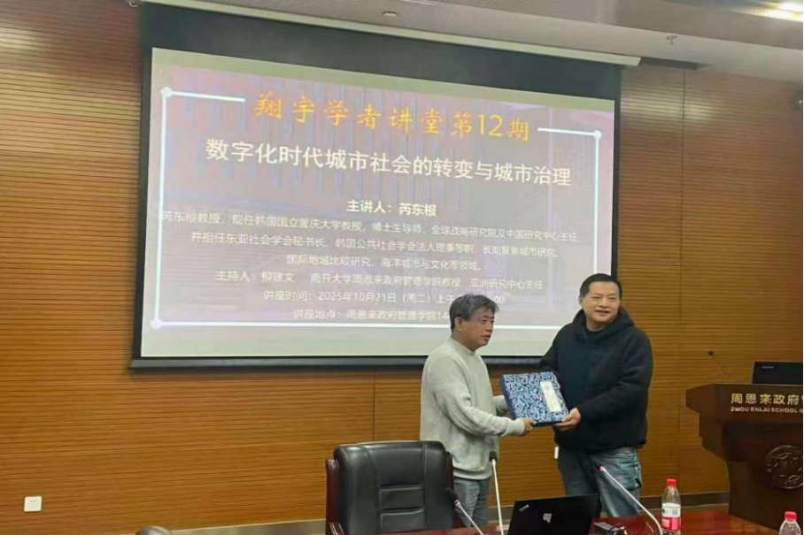 2025年10月21日,bw西汉姆联周恩来政府公司翔宇学者讲堂第12期“数字化时代城市社会转变与治理新路径”在bw西汉姆联144会议室成功举办。本次讲座邀请了韩国国立釜庆大学教授、博士生导师,全球战略研究院及中国研究中心主任,东亚社会学会秘书长、韩国公共社会学会法人理事芮东根教授。bw西汉姆联柳建文教授和锁利铭教授做了精彩的发言,讲座由陈纪教授主持。
