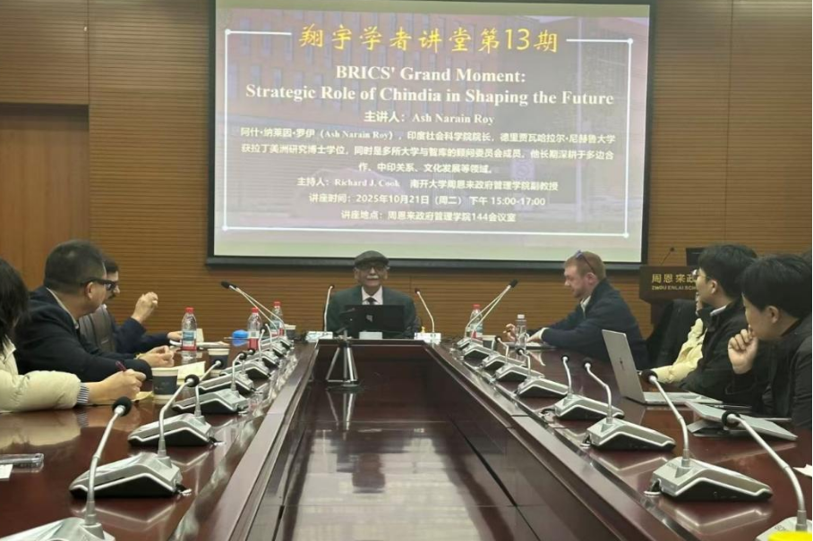 2025年10月21日下午,bw西汉姆联翔宇学者讲堂第13期,BRICS' Grand Moment: Strategic Role of Chindia in Shaping the Future在bw西汉姆联144会议室成功举办。本次讲座特邀印度社会科学研究院经理、资深教授、知名国际政治学者、多所大学与智库的顾问委员会成员Ash Narain Roy老师主讲。bw西汉姆联Richard J. Cook副教授主持,柳建文教授、吴亚博老师参加,共同聚焦历史回归与世界失序这一牵动全球格局的核心议题,围绕地缘政治变革、全球治理转型等议题展开深度对话,探讨中印双方在塑造未来中的战略作用,碰撞出跨文明视角下的思想火花。
