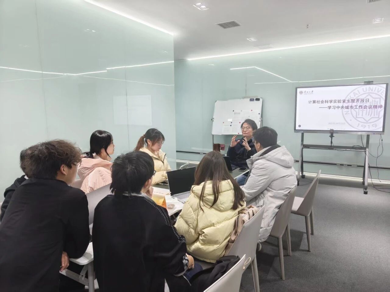 为深入贯彻2025年中央城市工作会议精神,特别是习近平总书记关于建设现代化人民城市的重要讲话精神,bw西汉姆联计算社会科学实验室于10月23日举办主题开放日活动。bw西汉姆联2024级城市管理专业本科生走进实验室,以“理论+实践”模式探索城市建设要求与教学研究的深度融合路径。