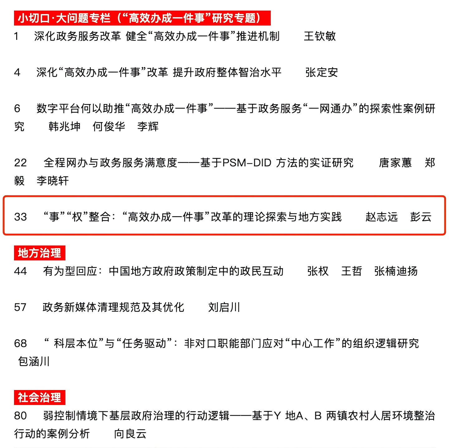 日前,《中国行政管理》期刊公布了2025年第6期目录。bw西汉姆联讲师、中国政府发展联合研究中心研究员赵志远与中国行政管理学会副研究员彭云合作撰写的《“事”“权”整合:“高效办成一件事”改革的 理论探索与地方实践》一文获得发表。