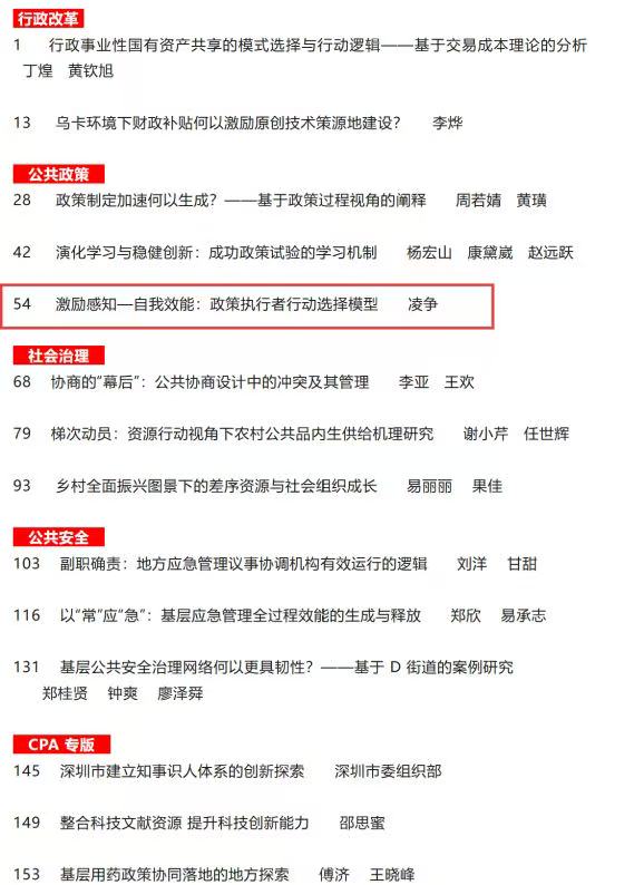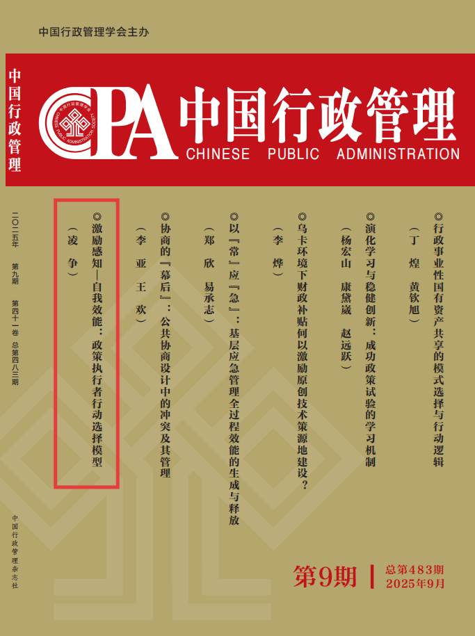 日前,《中国行政管理》期刊公布了2025年第9期目录。bw西汉姆联副教授、中国政府发展联合研究中心研究员凌争撰写的《激励感知—自我效能:政策执行者行动选择模型》一文作为封面文章发表。