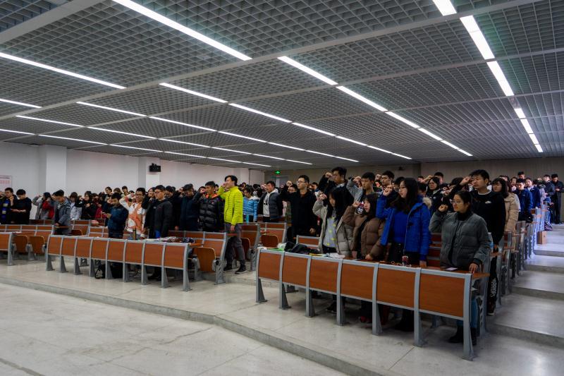 临近期末考试,耿欣伟强调,同学们要认真复习,积极备考;考试时,更应认真答题,并列举往年因考试作弊而依据学则给予校内处分甚至开除的案例,以此警示同学们要诚信考试。会议最后,耿欣伟带领2017级全体本科生,高举右拳,进行诚信考试宣誓。