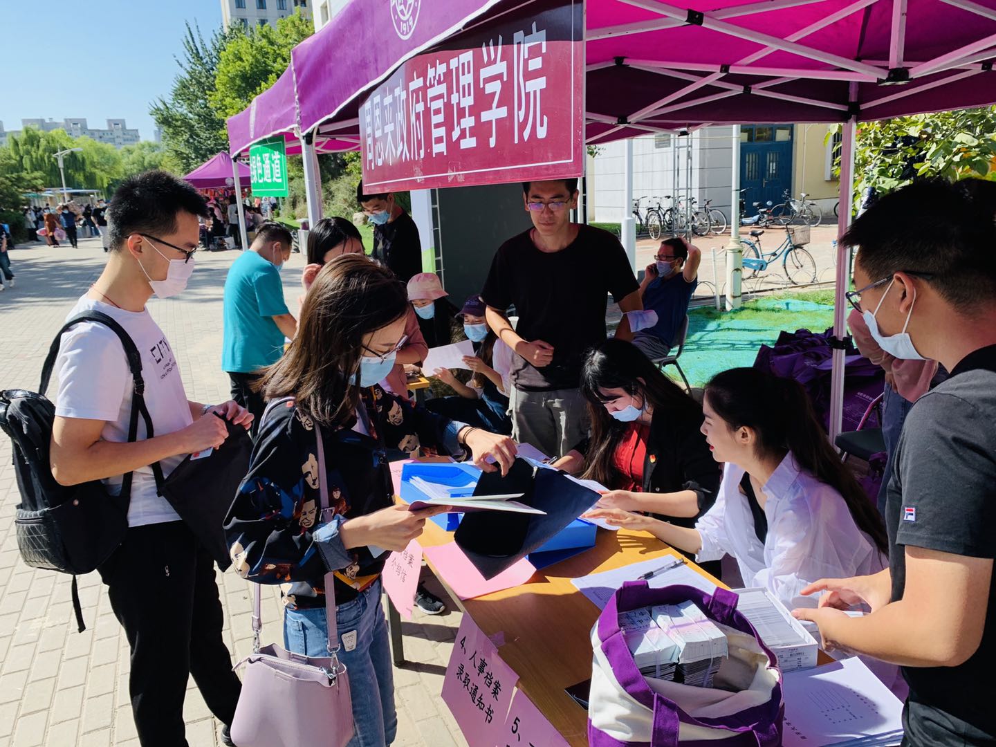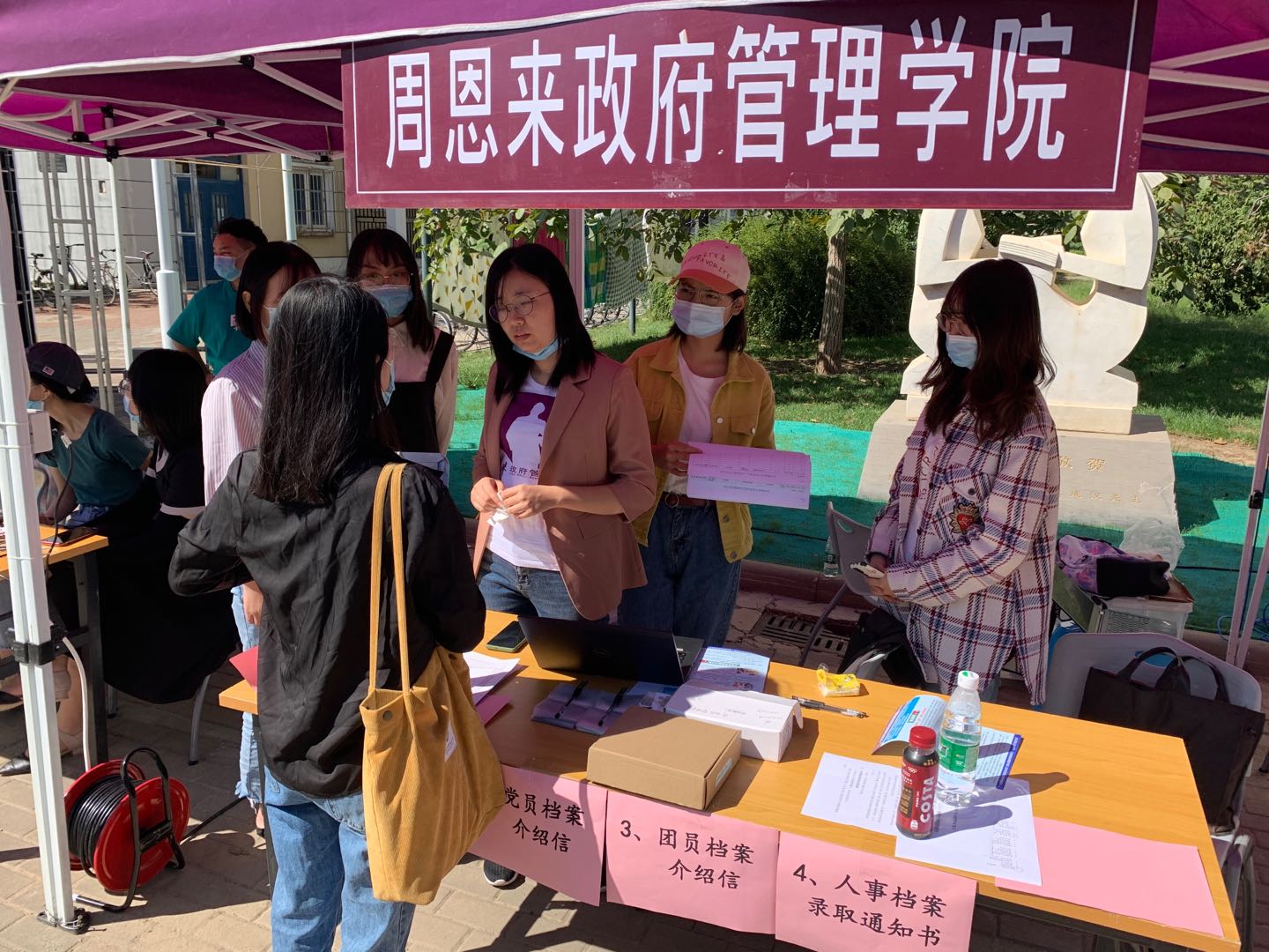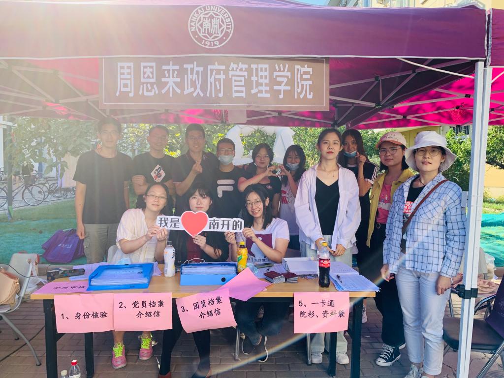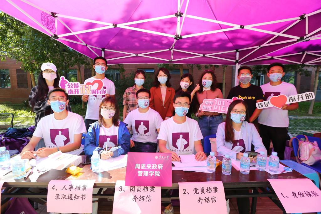 报到现场,新生们手持“公能南开 政因由你”的标语,用镜头记录下这难忘的瞬间,脸上的笑容展现了对未来学习生活的无限憧憬。公司为新生们准备了印有周恩来总理形象的院衫,在员工们成为南开人的第一天就将总理精神铭刻于心。印有“政府公司欢迎你”的口罩贴纸引来新生与家长们的阵阵好评,在疫情常态化阶段,政府公司以这种独特的方式表达了对新生的欢迎与关怀,并提醒新生严格遵守防疫规定,共同守护平安南开园。