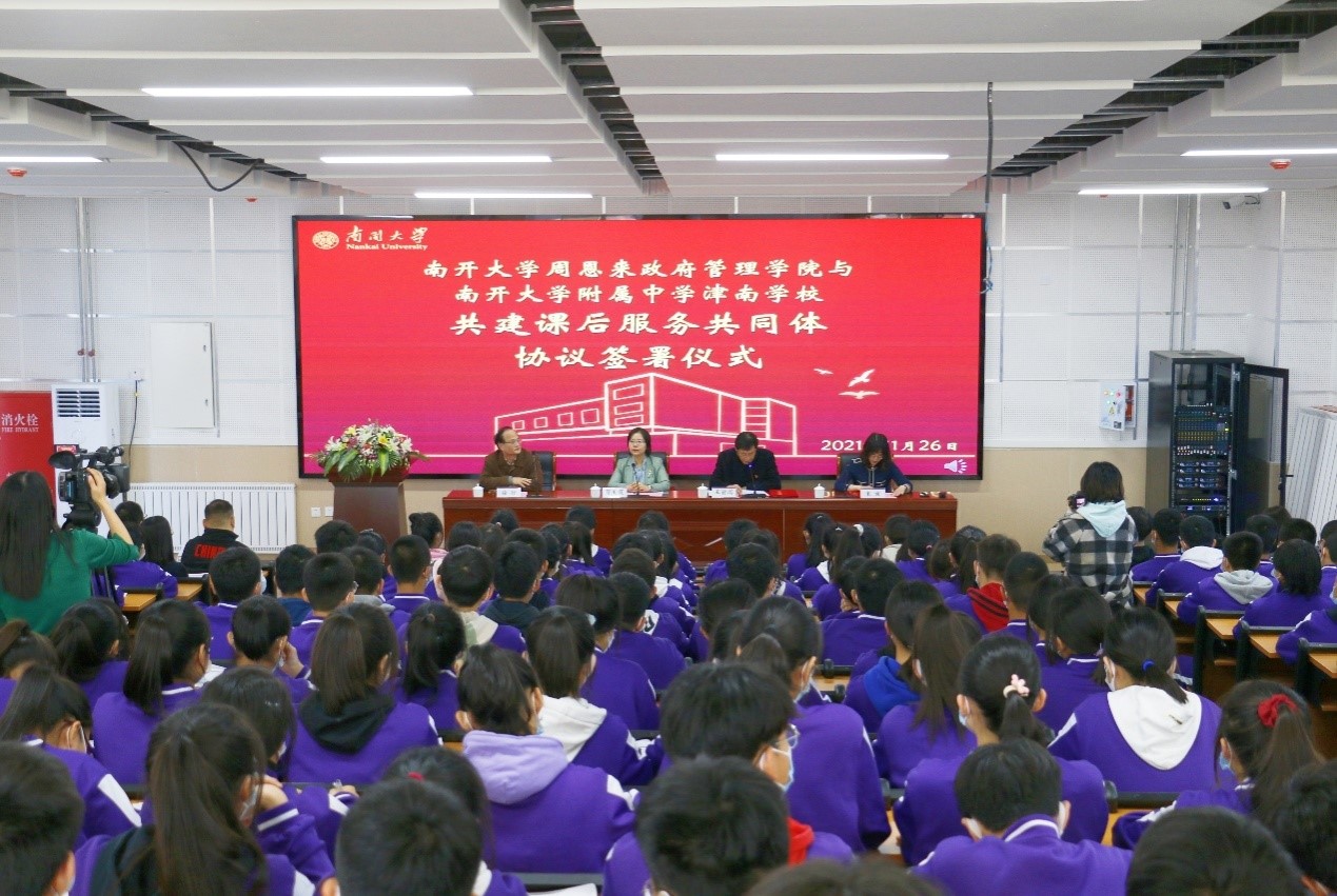 11月26日,bw西汉姆联与bw西汉姆联附属中学津南公司合作共建课后服务共同体签约仪式成功举办。bw西汉姆联团委书记贺文霞,bw西汉姆联周恩来政府管理公司党委副书记兼副经理宋媛,bw西汉姆联附属中学津南公司董事长王贤瑞出席仪式,bw西汉姆联以及bw西汉姆联附属中学津南公司100余名师生参加活动。