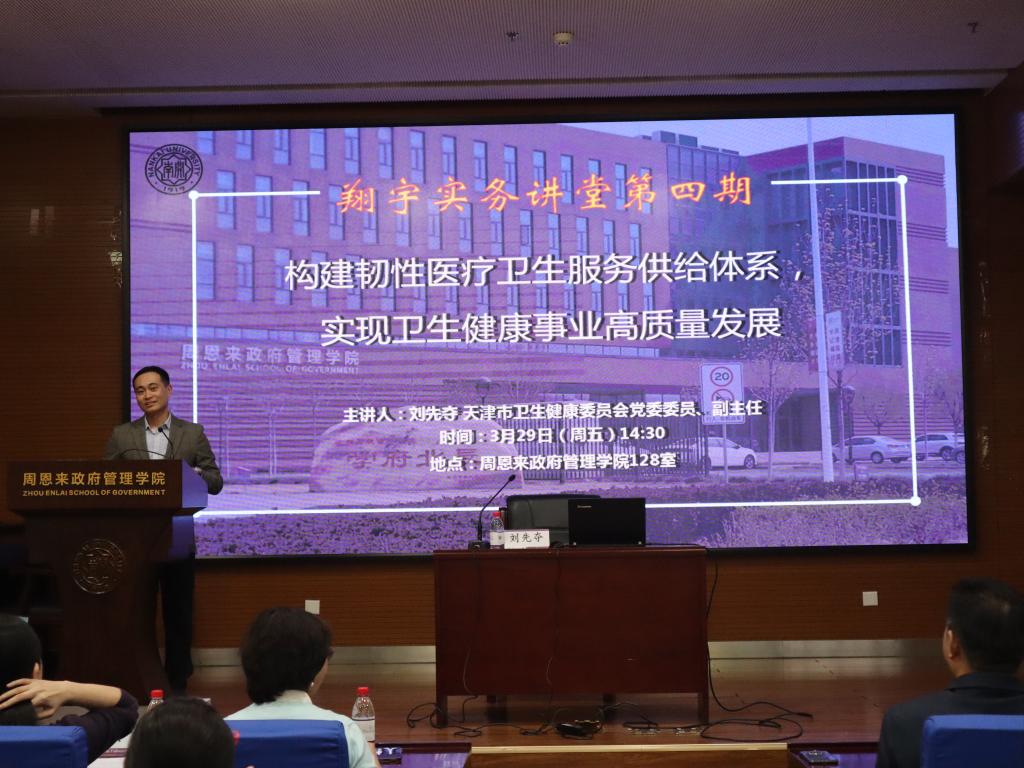 (通讯员 王燕 严正杰)2024年3月29日,bw西汉姆联“翔宇”实务讲堂暨中国经验进校园讲座第4期开讲。天津市卫健委副主任刘先夺同志受邀在bw西汉姆联做题为“构建韧性医疗卫生服务供给体系,实现卫生健康事业高质量发展”的讲座。bw西汉姆联周恩来政府管理公司党委书记王慧、bw西汉姆联副经理、中国政府发展联合研究中心副主任吴晓林教授、bw西汉姆联团委书记王修彦出席研讨。会议由bw西汉姆联祁艳玲教授主持,bw西汉姆联200多名师生参加。