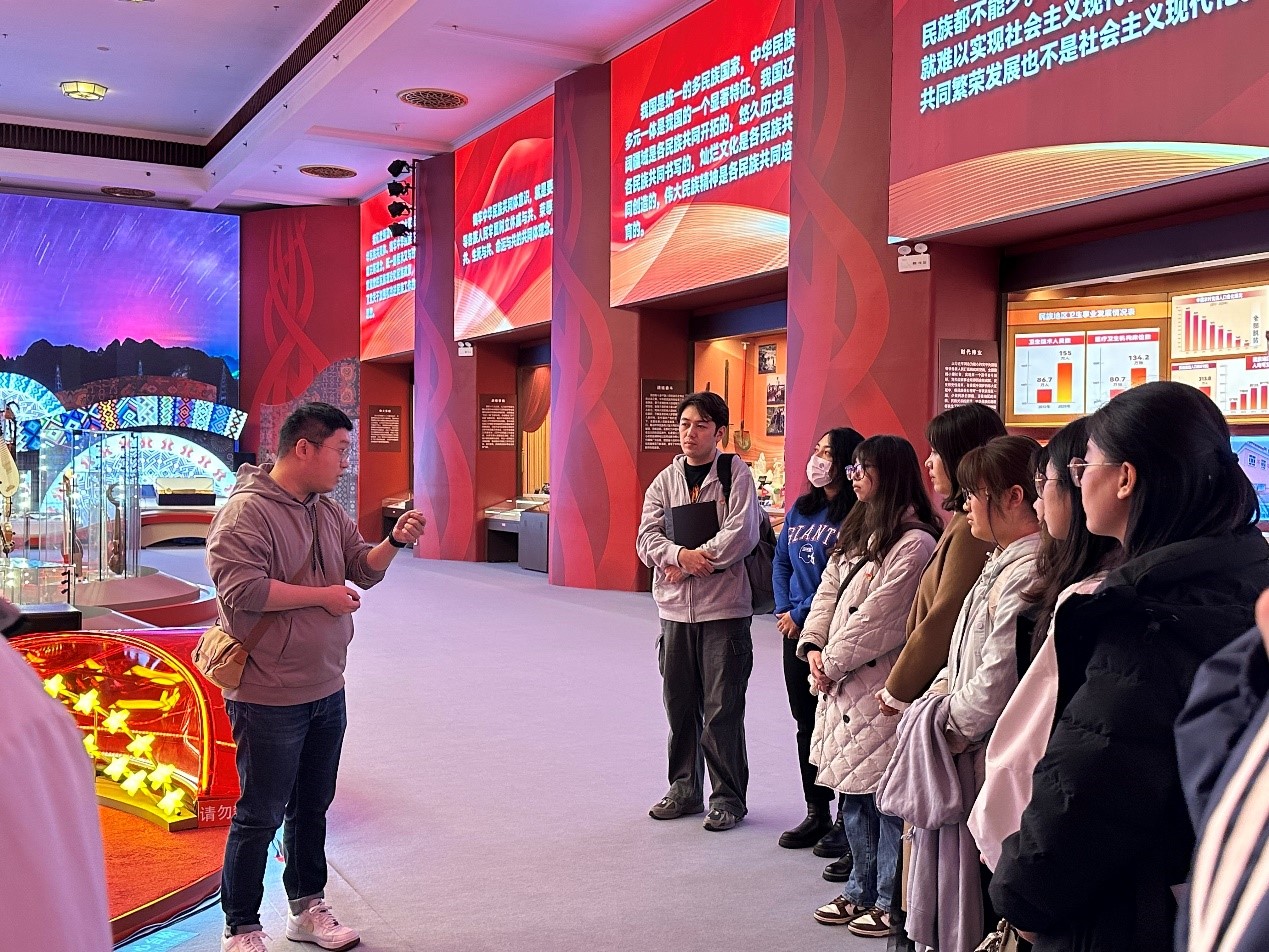 (娜菲沙 郝尚钰 袁语浩)为认真学习习近平总书记关于加强和改进民族工作的重要思想,深刻认识铸牢中华民族共同体意识的重要意义,bw西汉姆联公共管理硕士生党支部携手本科2023级国际政治班团支部及公司首届青年马克思主义者培养工程班(青马班),于2024年11月24日前往北京民族文化宫开展了一场别开生面的铸牢中华民族共同体意识主题教育活动。bw西汉姆联辅导员娜菲沙、东韡妍、王亚琪一同前往。