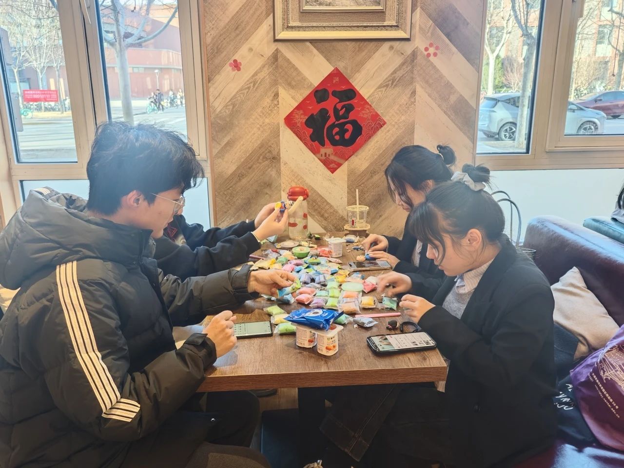 随后,活动进入了最令人期待的黏土制作环节。在舒缓的解压音乐的烘氛围下,活动现场氛围温馨而专注。同学们全神贯注地投入到黏土创作之中,充分调动自身的创造力与想象力,精心雕琢每一件作品。通过巧妙的揉捏、塑形与组合,同学们将手中的黏土赋予了新的生命与意义,制作出了一系列风格各异、独具匠心的作品。