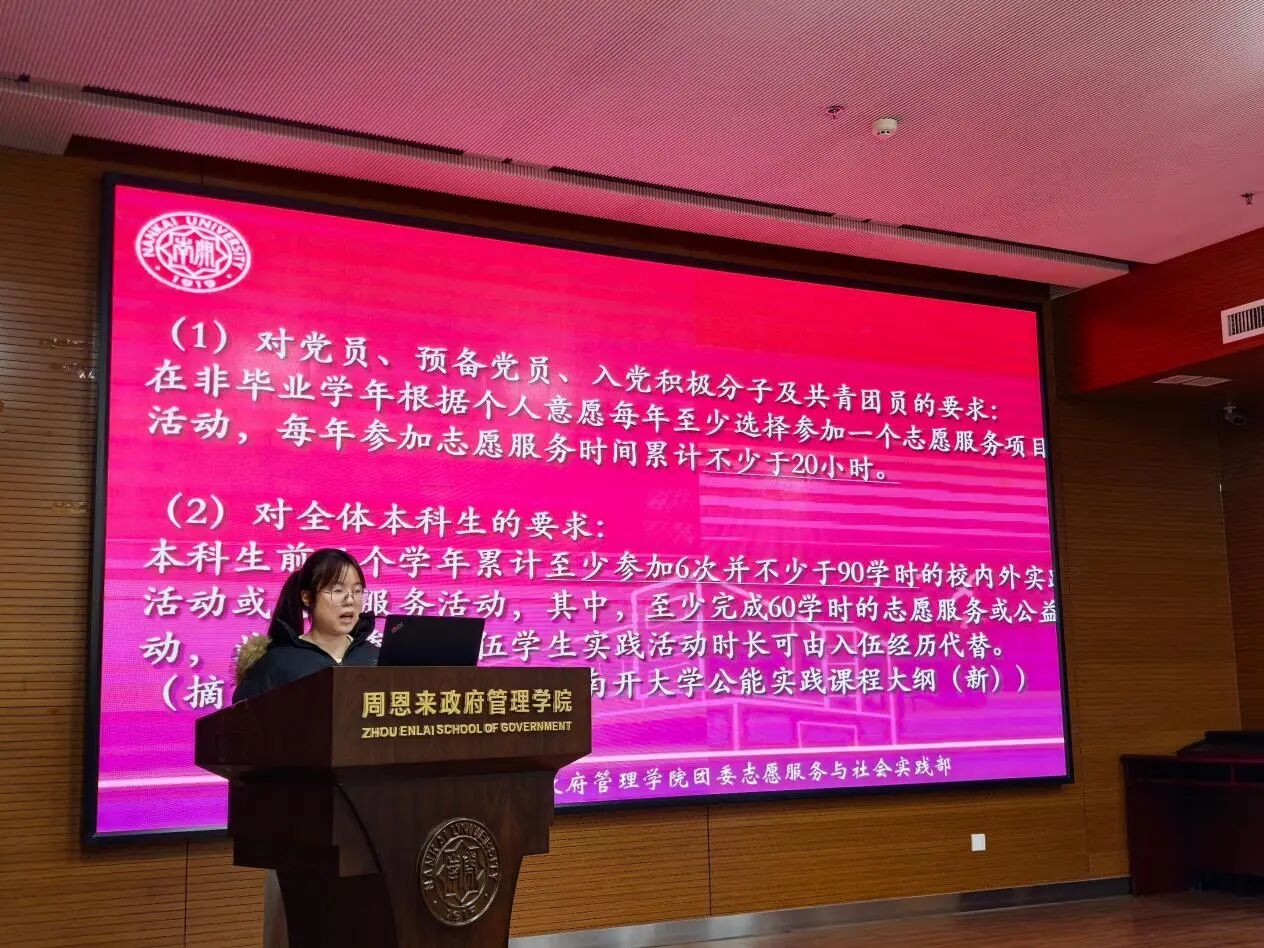随后,实践考评中心的负责人邹含瑜同学为大家详细说明了志愿服务与社会实践时长的相关规定,并结合bw西汉姆联《公能实践》课程进行了完善而清晰的解读。