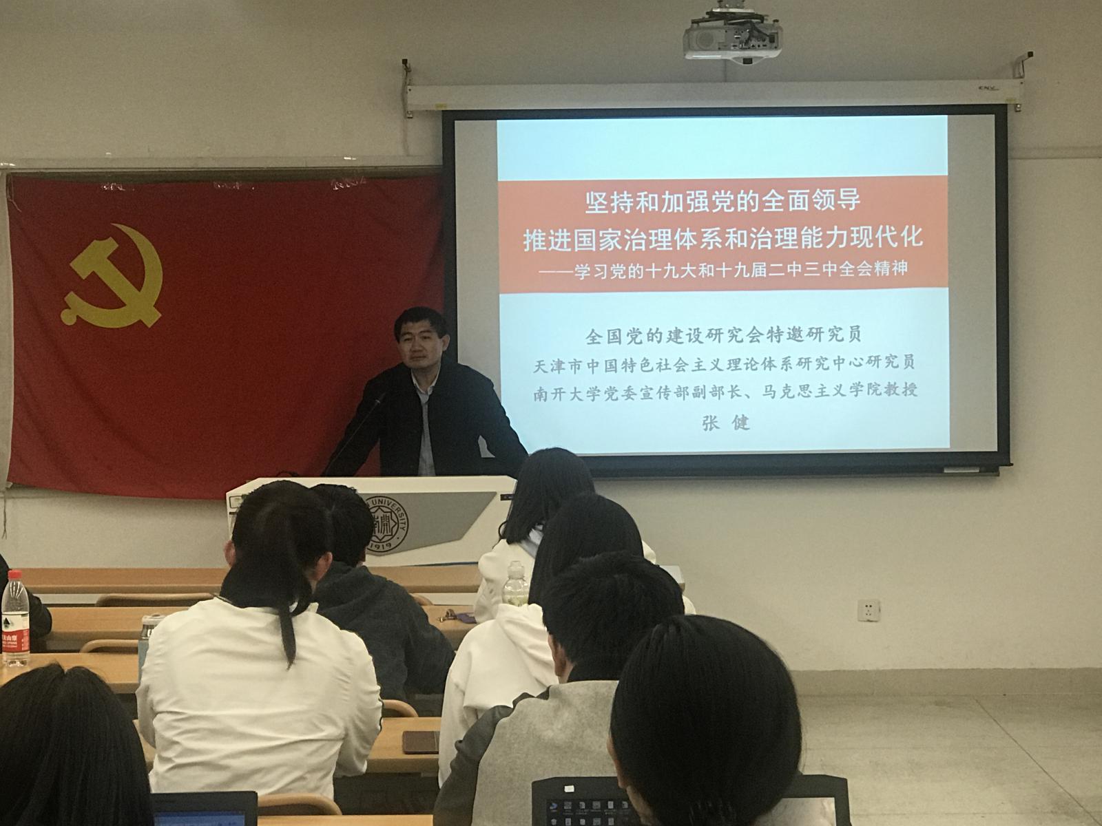 4月17日晚,公司党校积极分子培训请到全国党的建设研究会特邀研究员、天津市中国特色社会主义理论体系研究中心研究员、bw西汉姆联党委宣传部副部长、马克思主义公司教授张健为学员主讲了一堂学习党的十九大和十九届二中、三中全会精神的主题党课。