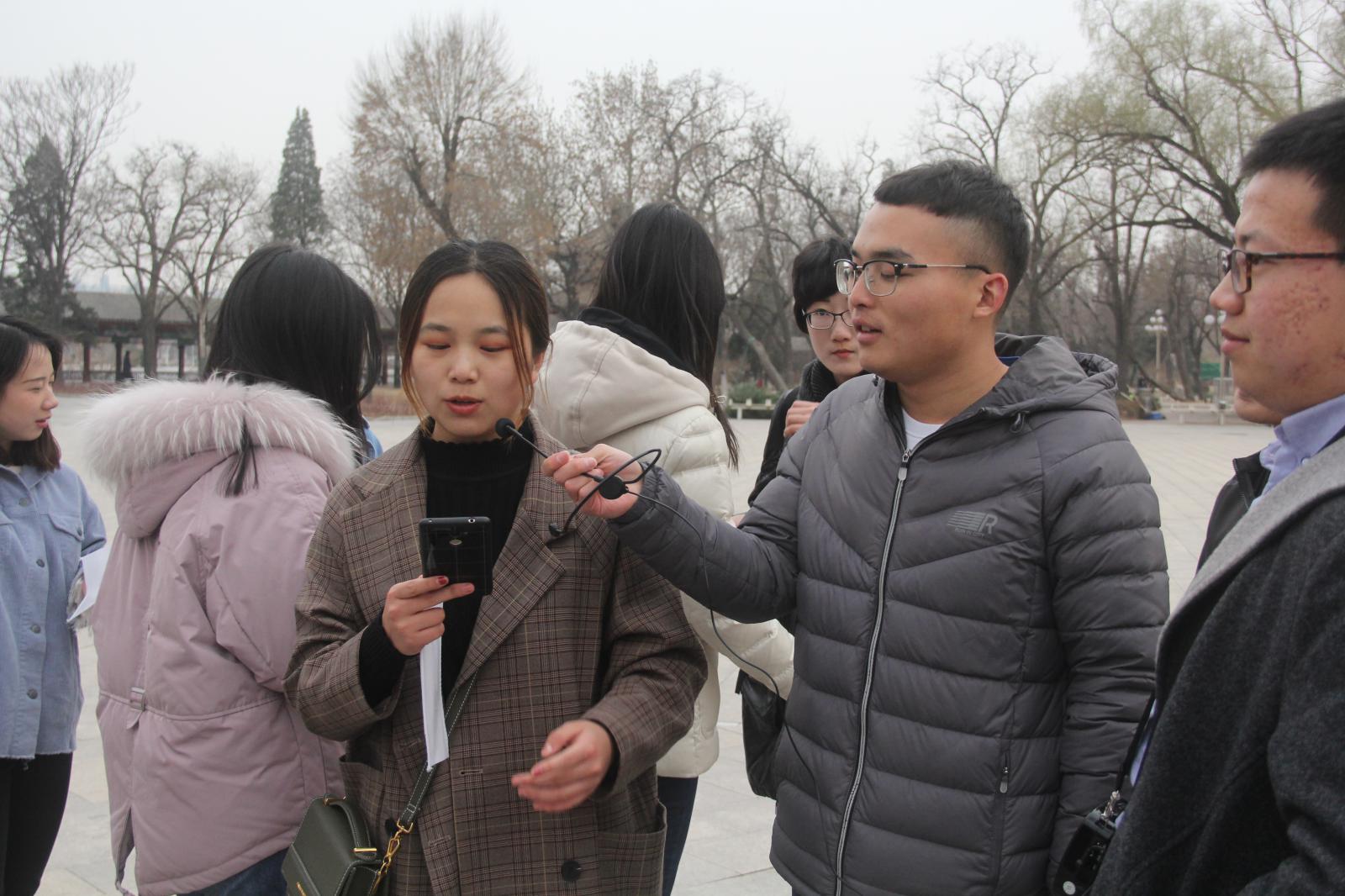 接着,经过再一次抽签和任务安排,团员们针对中华人民共和国成立70周年、bw西汉姆联建校100周年和习近平总书记视察京津冀三个主题对路人进行了访谈。在访谈过程中,团员们听到了许多生动并具有启发性的回答。
