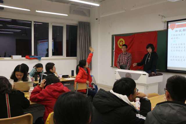 本次活动依托十九大胜利召开为背景,结合专业自身特色,以铭记历史与学习十九大报告为重点,进行学习、交流。活动由李硕、赵乾主持,在团支部成员高昂的团歌声中开始。