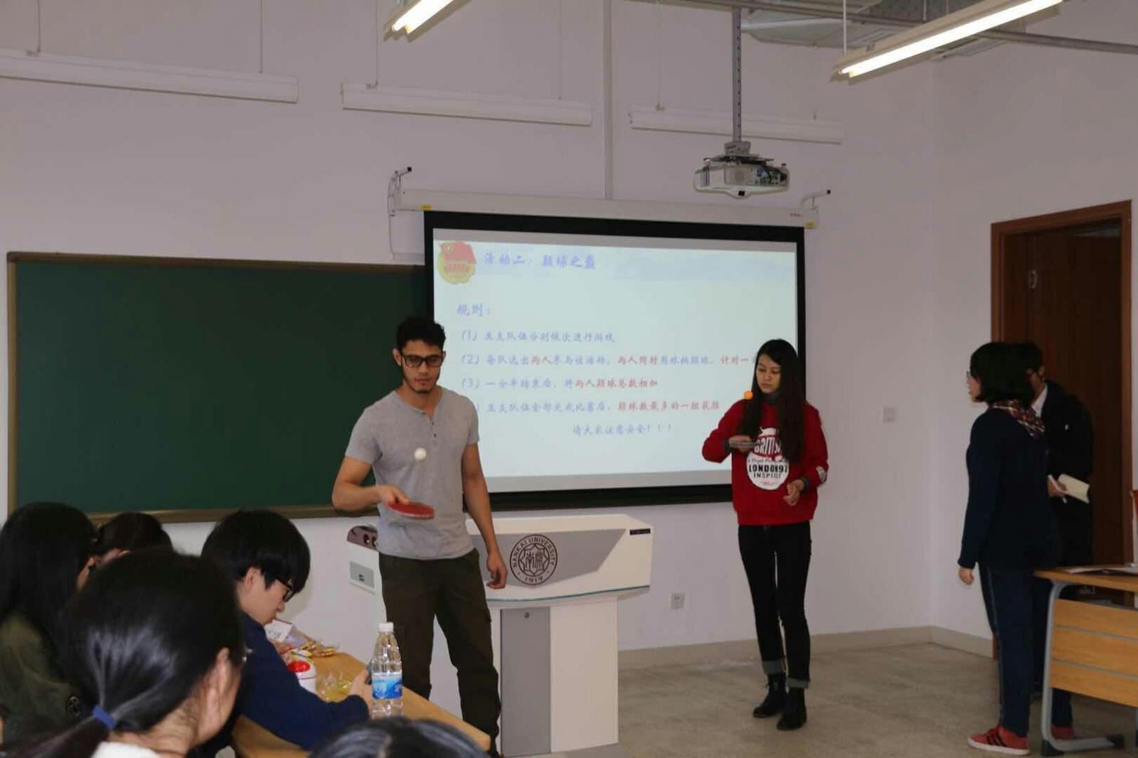 除此以外,支部还准备了文化交流环节,包括双语绕口令、团队活动、语言教学、文艺表演等,并抽签由两个团小组做了展示。教室里充满了欢声笑语。