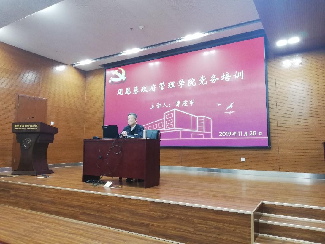 2019年11月28日下午,政府公司于128报告厅举行党务培训会,主讲嘉宾为原bw西汉姆联保卫处副处长、原bw西汉姆联离退休人员管理处副处长、原bw西汉姆联武装部副部长——现年67岁的公司党委特聘兼职组织员曹建军老师。会议由公司团委辅导员、本科生党支部书记王燕主持,公司本科生、研究生各党支部书记、支部委员和培养联系人同志参加了此次培训。