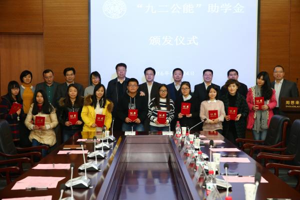 副董事长朱光磊出席颁奖仪式,并为捐赠人代表、政治学系1992级员工南敬伟颁发“九二公能”助学金捐赠证书。1992级员工代表,bw西汉姆联、公司发展办负责人以及师生代表30余人参加。
