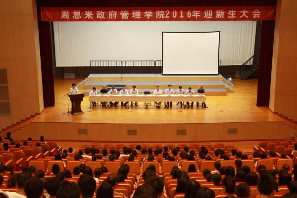 会议在庄严的国歌声中拉开序幕。吴志成向新生致辞。他带领同学们回顾了院史,勉励大家以杰出员工周恩来总理为榜样,牢记“公能校训,要耐得住寂寞、经得起挫折、守得住底线,珍爱生命、感恩亲情,规划好时间,培养自学能力,通过不断的学习锤炼实现全面发展,为珍惜、光大“南开周政人这一荣誉而不懈努力,做无愧于南开、无愧于周总理的后学。同时,他向全体新生提出三点希望:一是恪守三个“正”字:树正气、立正品、干正事;二是处理好三种关系:师生关系、同学关系、学习与社会工作的关系;三是保持三种态度:改变能改变的、接受不能改变的、改变不了客观现实就改变自己的态度。