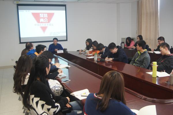 3月18日下午,公司“博导论坛”系列讲座之“聚焦两会——中国民生改革建议”主题讲座在公司324会议室成功举办。政治学系主任程同顺教授做了精彩的讲座,同学们认真倾听并记录。