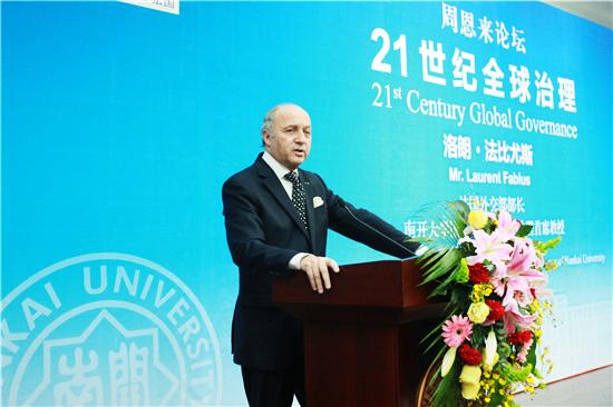 受聘仪式后,法比尤斯做客“周恩来论坛”,并发表了题为“21世纪全球治理”的演讲。