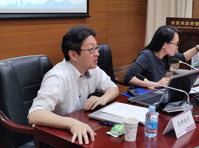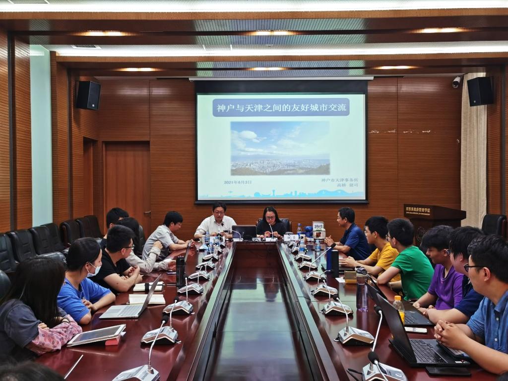 高桥健司所长通过视频、幻灯片、实物展示等形式生动介绍了神户市的历史沿革、地域风光、乡俗民情与主要产业等内容,并结合公司师生的研究方向对日本地方自治的法律制度框架、基本结构、府际关系等进行了详细的解读。他指出,天津市与神户市是在周恩来总理的亲自关怀下,于1973年6月24日正式结为友好城市,这是中日之间的首对友好城市,也是新中国成立后结成的第一对中外友好城市。高桥先生系统讲述了结为友好城市的近五十年来,双方在野生动物饲养、医疗器械研发、港口运营管理与新冠疫情互助等多方面所开展的卓有成效的合作交流活动。他表示,天津与神户之间、中日之间文化相近、往来密切,具有长期的友好交流历史,希望未来能进一步加强双方的经济文化合作,共促两市与两国的蓬勃发展。