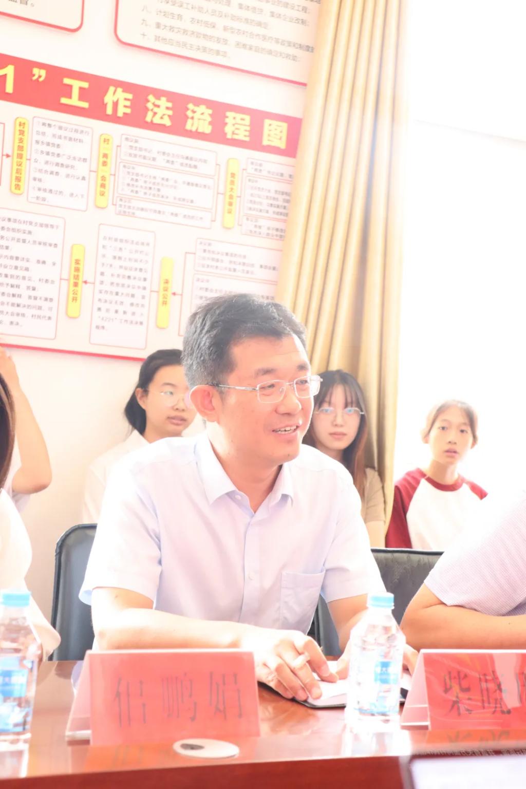 座谈会上,薛店镇党委书记柴晓明和沟渠头村党支部书记兼村委会主任杨锁旺分别介绍了镇、村两级的有关情况。柴书记指出,在薛店镇乡村振兴过程中,首先是加强了基层党组织的建设,重视基层治理中的“领头雁”作用。在此基础上,全镇上下大力推动了产业振兴发展,夯实农村产业基础,提高村集体经济收入。并在产业不断发展的情况下,持续重视乡风文明的建设,实现了乡村治理有效发展。杨书记提到,本村在党支部带领下通过建立合作社“联盟”,以实现医疗、养老、社会管理服务等全方位衔接运行,提升了村民幸福感,积极推进产业人才回归,促进乡村振兴建设。此外,还积极打造各种融合本村民俗文化活动,不断深化乡村精神文明建设,以此反哺村级政治、经济、社会和生态发展。
