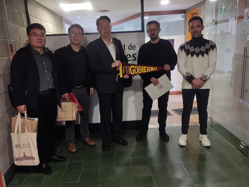 朱光磊一行首先访问安第斯大学阿尔韦托·卡马戈政府管理公司,并同该院经理代表塞巴斯蒂安•吉拉尔多(Sebastian Giraldo)、国际科研合作部负责人卡米罗•莫雷诺(Camilo Moreno)、国际处项目官员梅拉•诺沃亚(Mayra Sotelo Novoa)等举行会谈。双方介绍了彼此公司的历史、专业设置、科研项目等情况,讨论了如何在教师交流、员工交换、短期讲学、新汉学计划等方面加深合作。双方同意签署院际交流协议,并适时举行线上签约仪式。