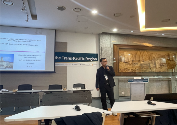 柳建文教授发表了题为“Optimization and Adjustment of Urban Layout in China’s Border Areas under ‘The Belt and Road’”的演讲。他指出,城市的点位布局对推进“一带一路”倡议具有重要作用。当前我国中心城市和节点城市存在区域分布不平衡问题,边疆地区城市群发展缓慢,边境口岸城市的国际化程度较低,应当通过城市点布局协调城市间关系,促进城市群的发展。