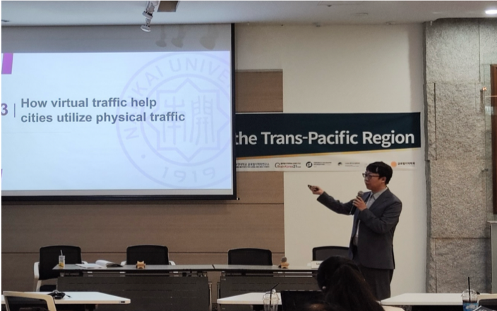 吴涵博助理研究员发表了题为“Using Virtual Traffic to Drive Physical Traffic: How Small City Leverage Huge Traffic”的报告。他指出,网络虚拟流量为一些不具备先天优势的小城市吸引实体流量并发挥经济效应提供了新的机遇。通过案例分析,他提出了网红城市发展的三个阶段,分析了良性的“政府—市场—民众”互动机制,对“降温”后的城市何去何从做出了预测并提出了相关建议。