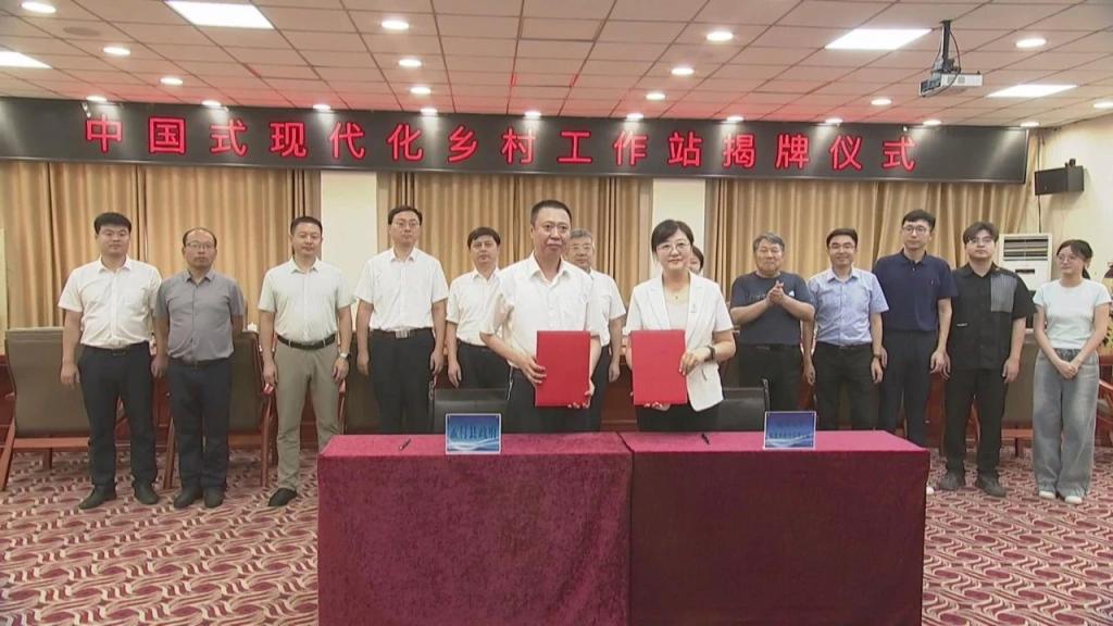 李纪元与翟磊代表双方进行中国式现代化乡村工作站签约。李国德与崔宇为中国式现代化乡村工作站揭牌。李国德为本地站长李纪元授聘书,崔宇为公司站长翟磊授聘书,王修彦为员工站长孟旺授聘书。
