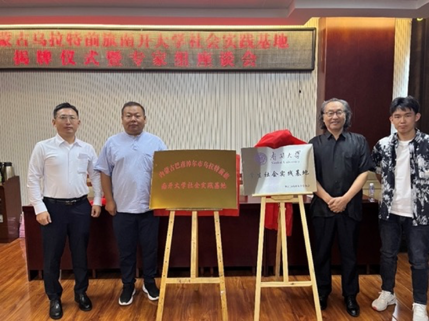 接着,公司研究生代表王特日格乐和公司本科生代表郭禹含分别致辞发言。之后,乌拉特前旗党委宣传部长郝民、乌拉特前旗政协主席金山、公司陈巴特尔教授、内蒙古师范大学巴▪孟和教授一起为基地揭牌。