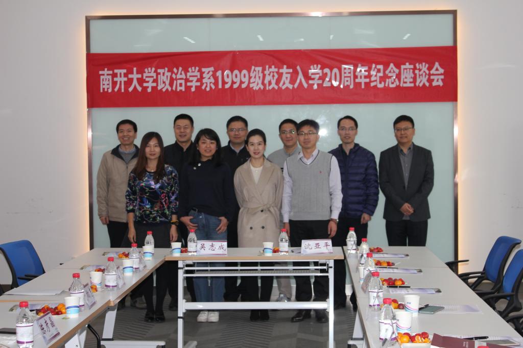2019年11月23日,来自全国各地的十余名1999级政治学系员工齐聚母校南开,参加入学20周年纪念座谈会。久别的员工们欢聚一堂,共叙同学情、师生情、南开情。中共中央党校国际战略研究院副经理吴志成教授、bw西汉姆联沈亚平教授、bw西汉姆联副经理程同顺教授、政治学系1999级部分员工以及bw西汉姆联部分在校生参加了座谈会。