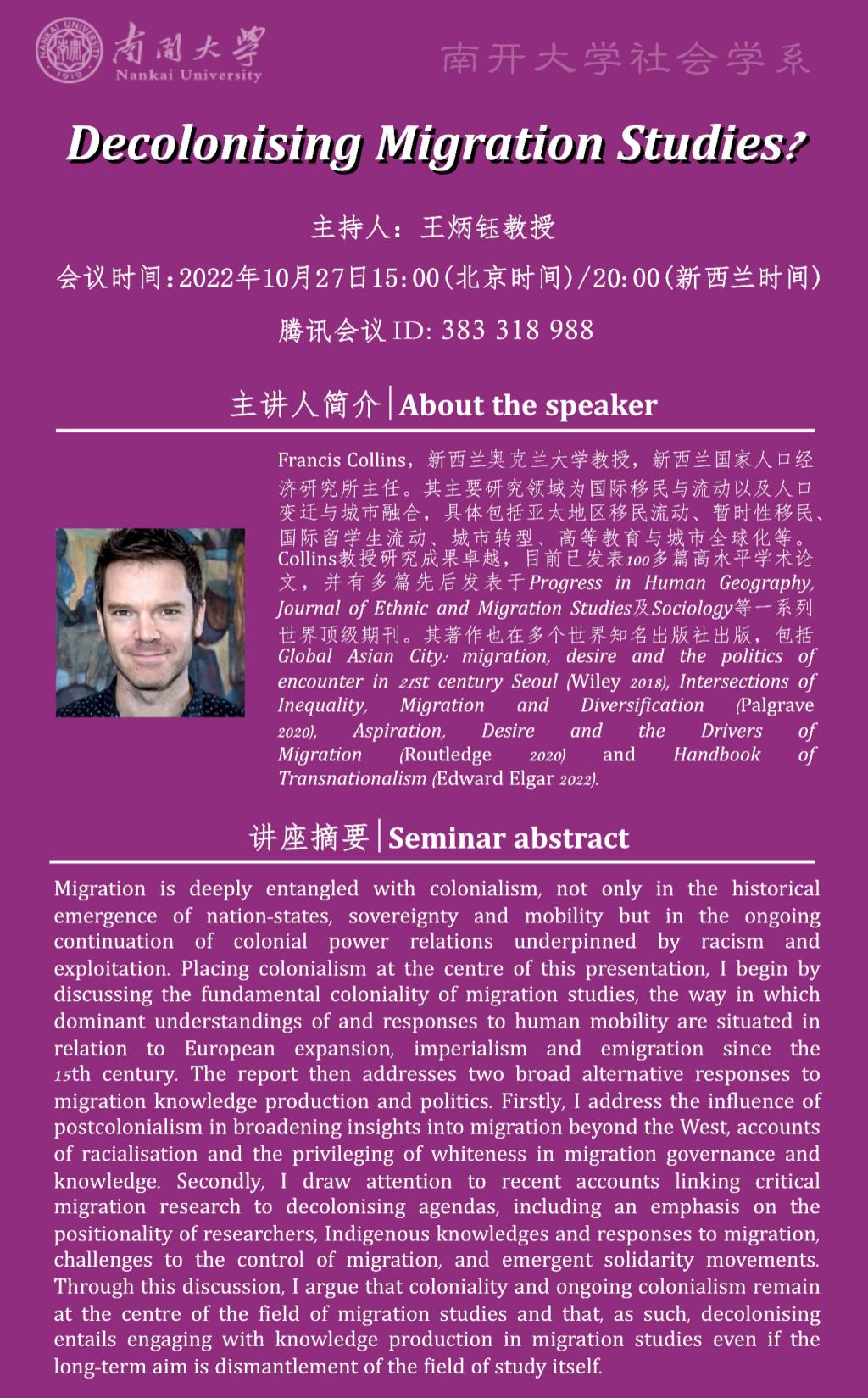 Francis Collins:Decolonising Migration Studies?