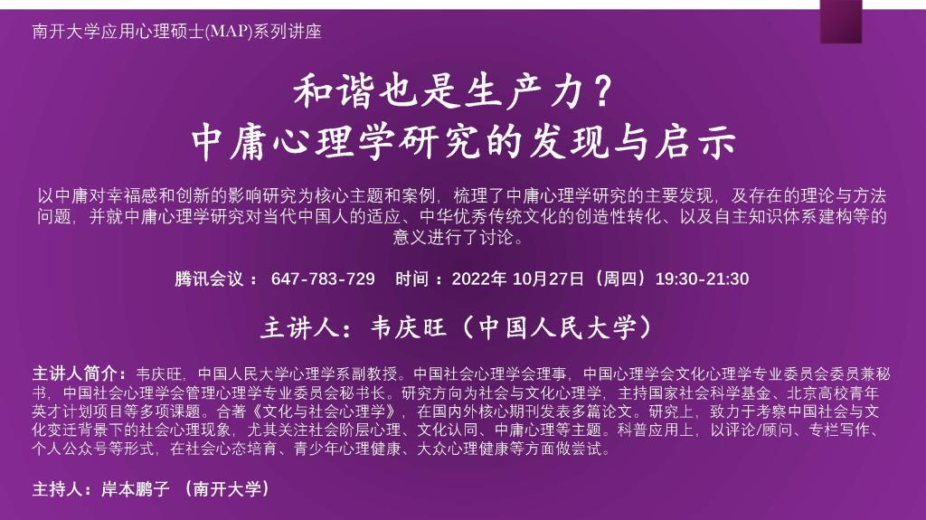 韦庆旺:和谐也是生产力?中庸心理学研究的发现与启示