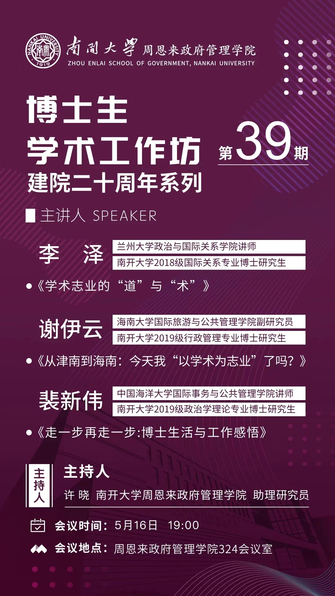 建院二十周年系列讲座 | 南开“翔宇”实务讲堂第7期:新时代国家治理的发展与职业选择