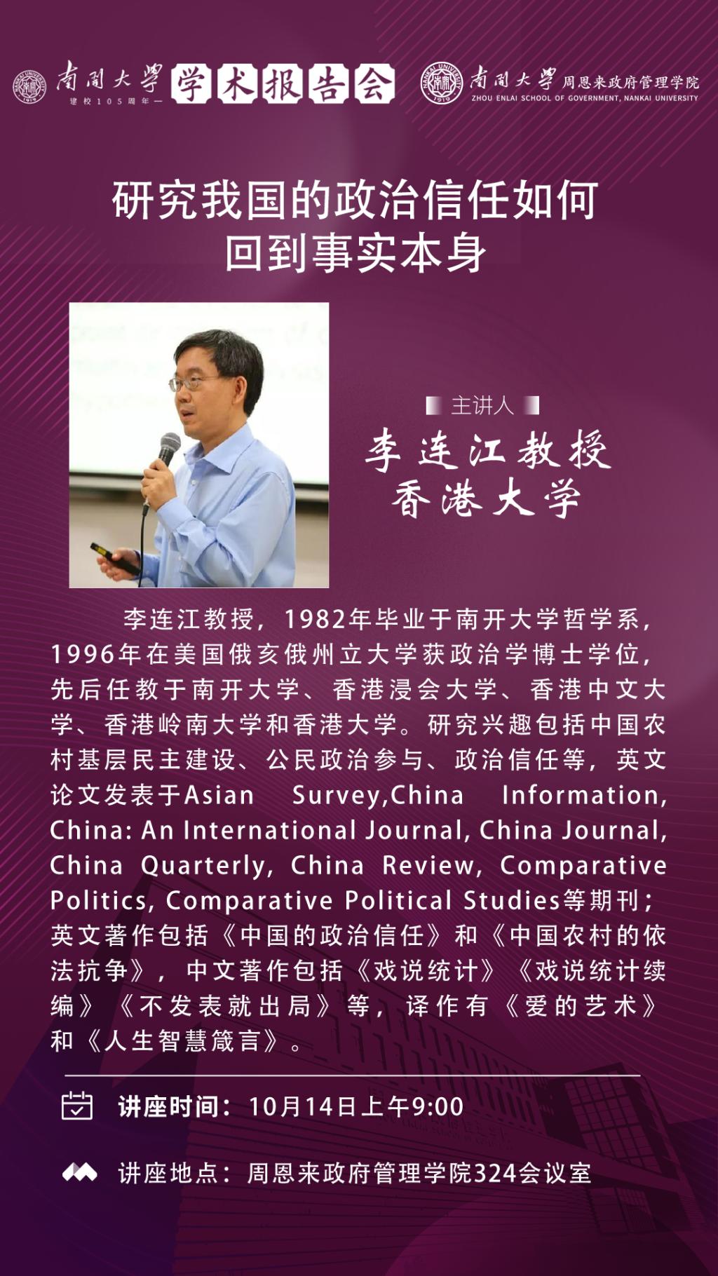 bw西汉姆联建校105周年学术报告会|李连江:研究我国的政治信任如何回到事实本身