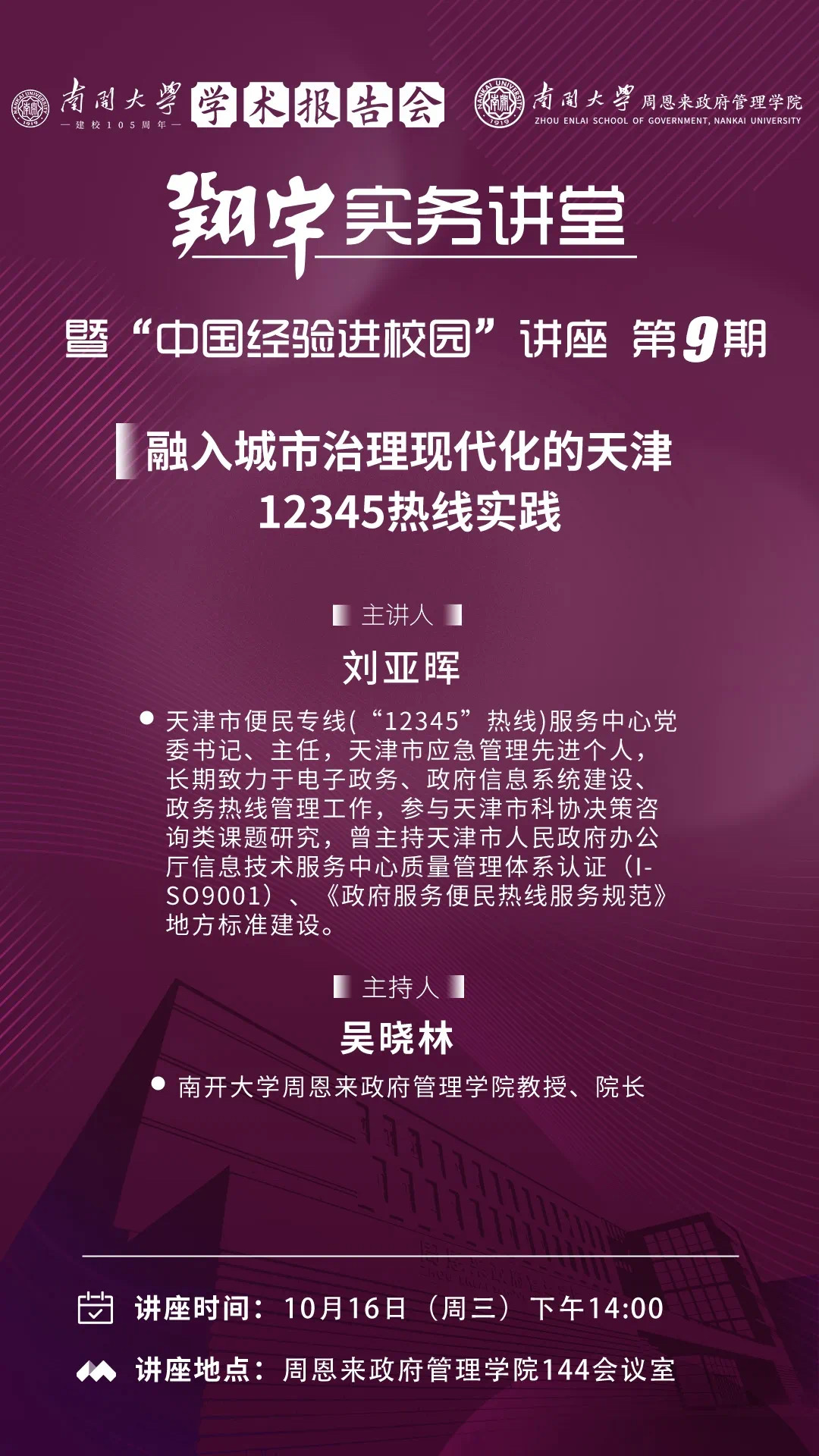 bw西汉姆联建校105周年学术报告会暨“翔宇”实务讲堂|刘亚晖:融入城市治理现代化的天津12345热线实践