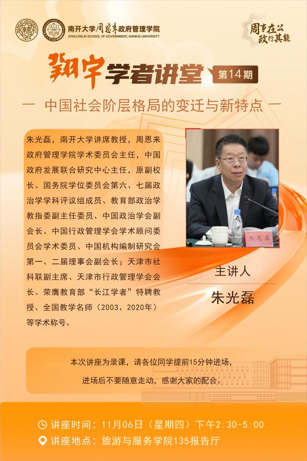 翔宇学者讲堂第14期 | 朱光磊:中国社会阶层格局的变迁与新特点