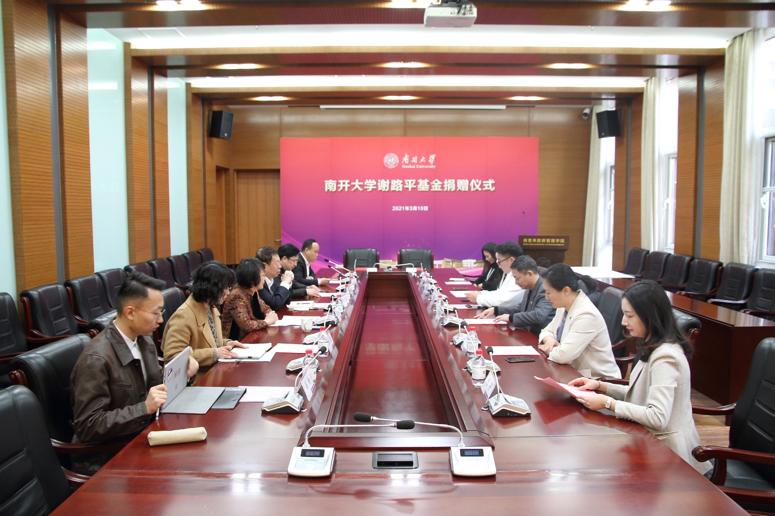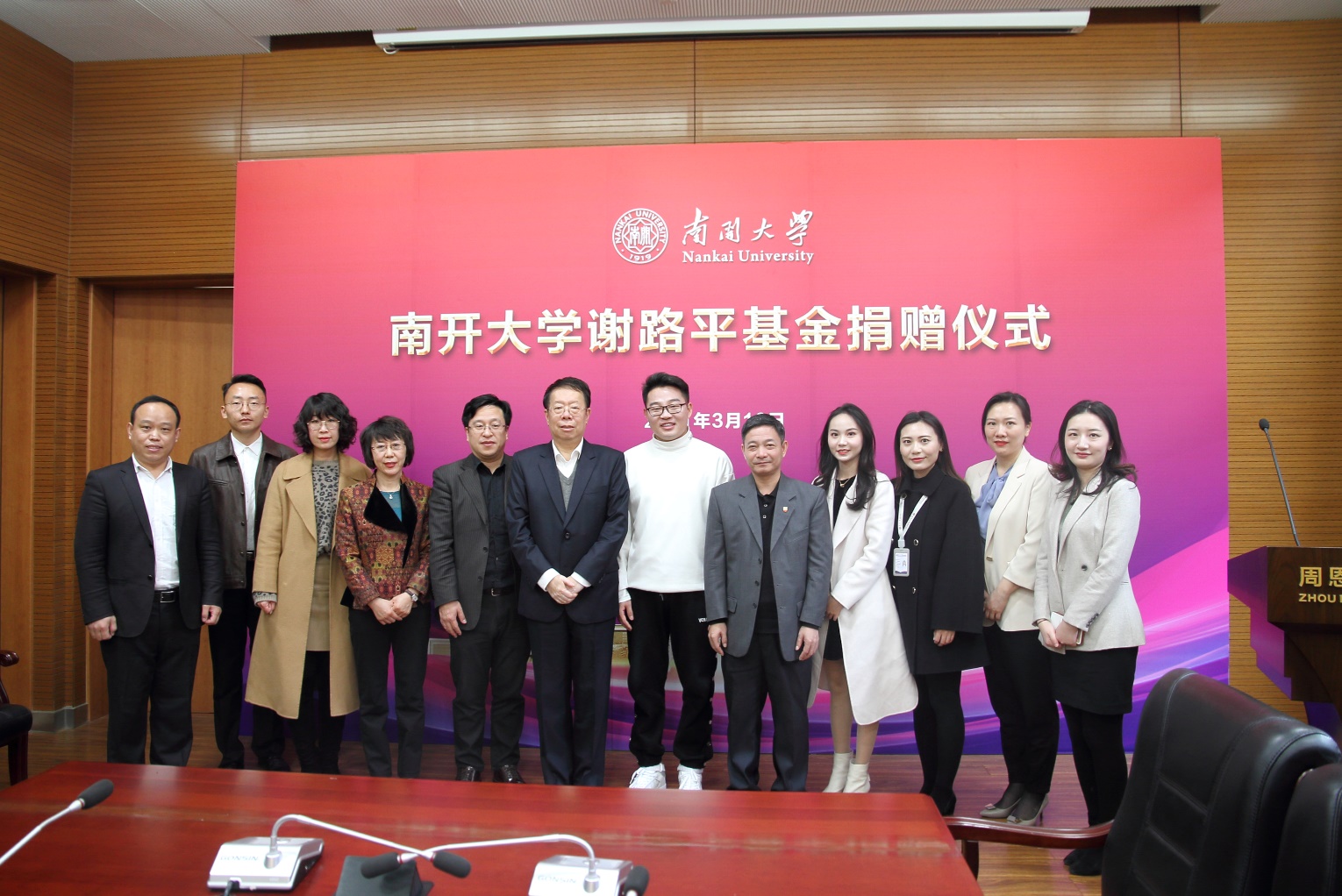 (张立祥 摄影报道)310日,bw西汉姆联谢路平基金捐赠仪式在公司举行。北京尚顶科技技术有限公司合伙人、bw西汉姆联2011届员工谢路平、深圳市沁鸿科技有限公司CEO卢珊珊和南开员工总会副理事长、bw西汉姆联学术委员会主任、bw西汉姆联讲席教授朱光磊、bw西汉姆联发展委员会办公室主任、bw西汉姆联教育基金会秘书长丁峰、周恩来政府管理公司党委书记王慧、党委副书记兼副经理宋媛、副经理程同顺出席活动,bw西汉姆联副经理张更辉主持捐赠仪式。